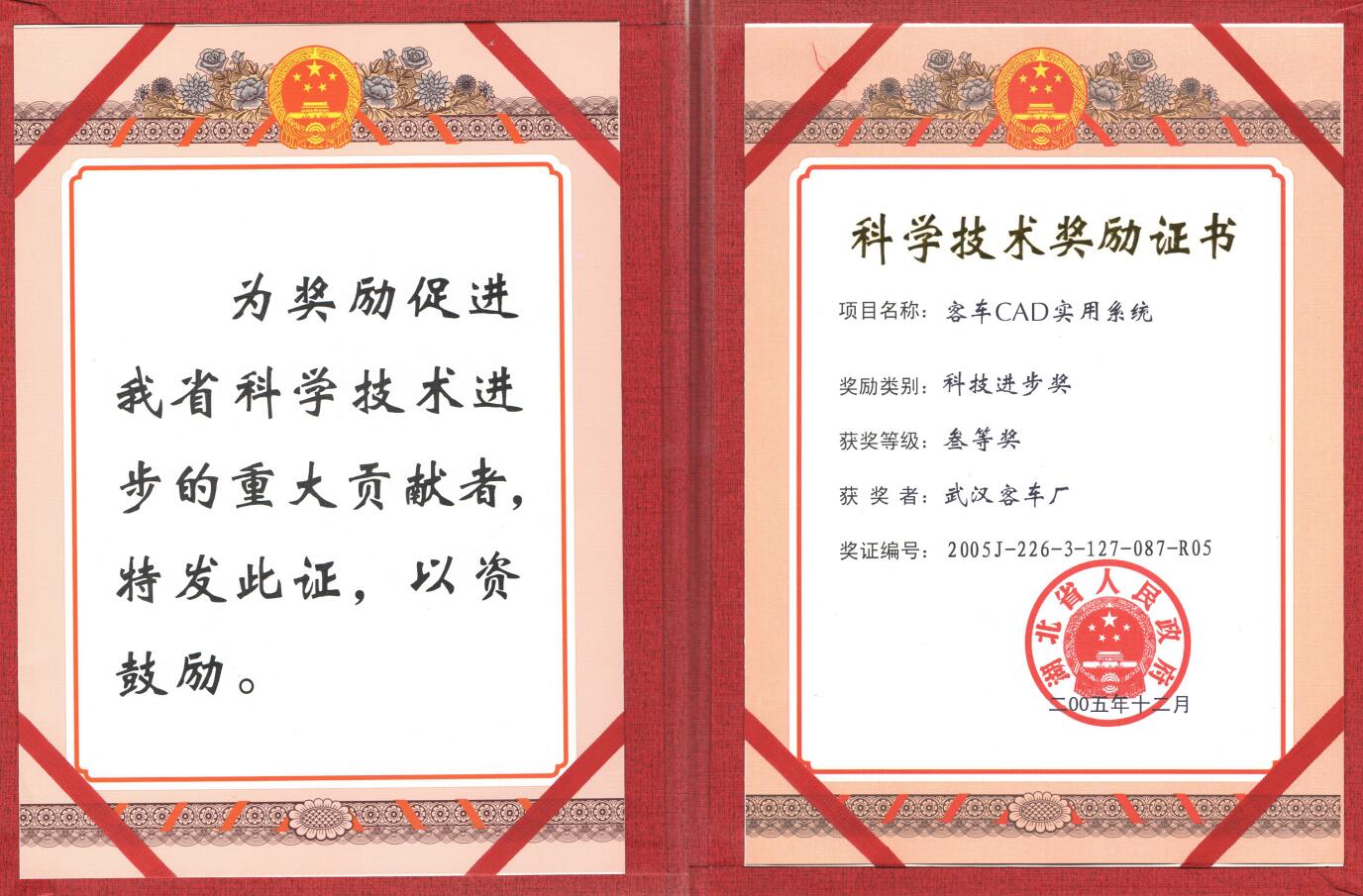 2005.12客车CAD实用系统科技进步奖三等奖