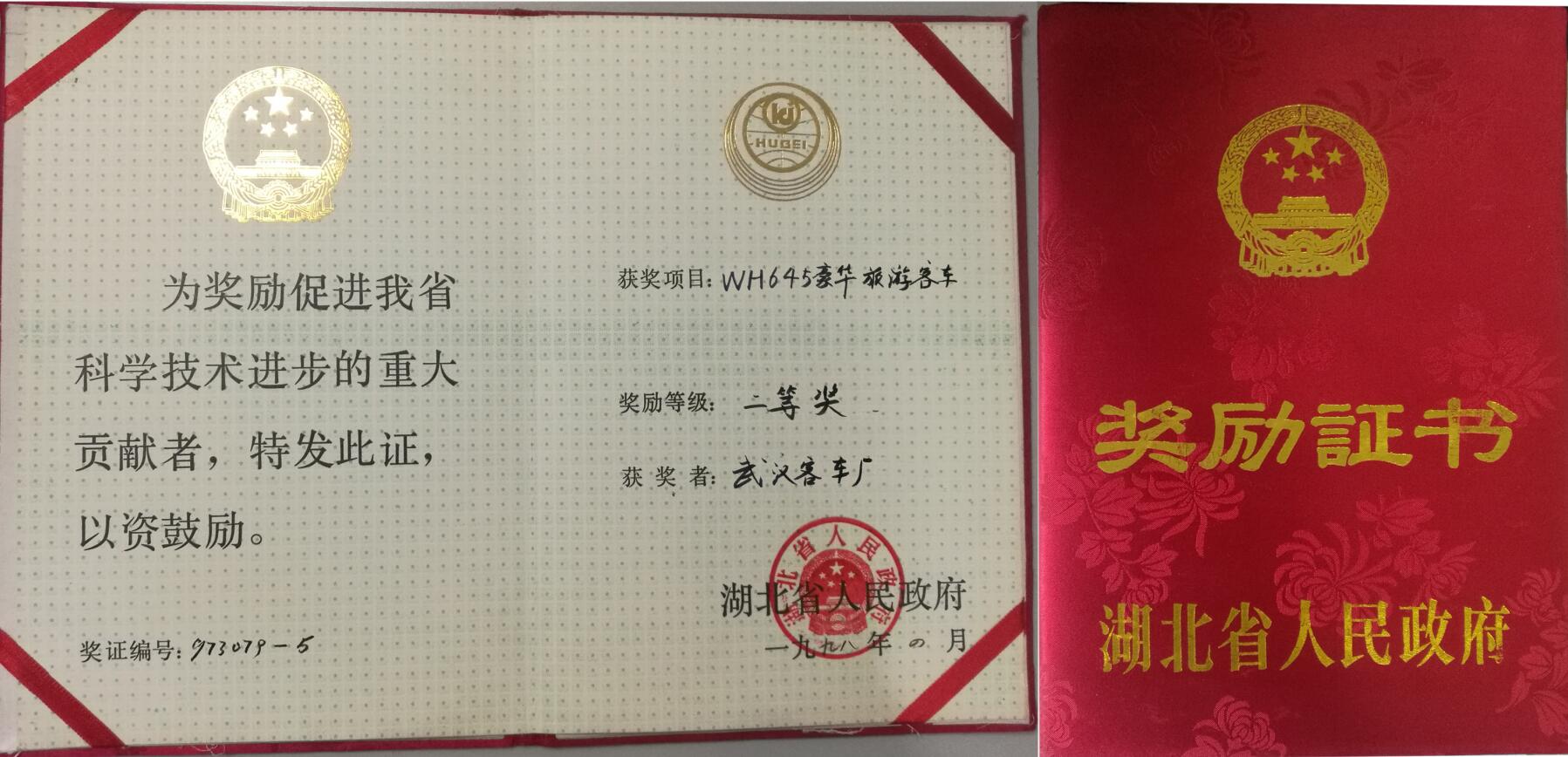 1998.4WH645豪华旅游客车科技进步奖二等奖